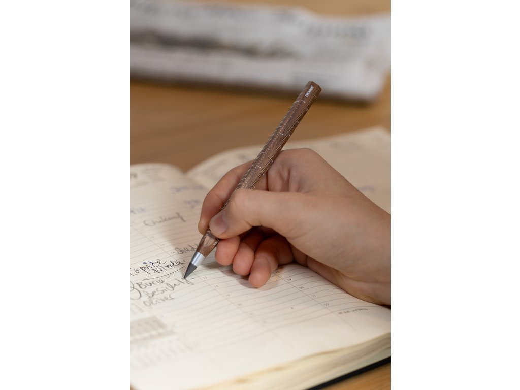 Už žádné ostření - udržitelná psací špička v HB pro délku psaní až 20 km, udržitelně vyměnitelná a mazatelná. V typickém CONSTRUCTION vzhledu s centimetrovým/palcovým pravítkem a měřítkem 1:20 a 1:50. Pouzdro z jemného ořechového dřeva s certifikací FSC dodává tužce hřejivý, přirozený pocit a dělá z ní stylového každodenního společníka. CONSTRUCTION ENDLESS WALNUT je lehký a pohodlně se drží.
