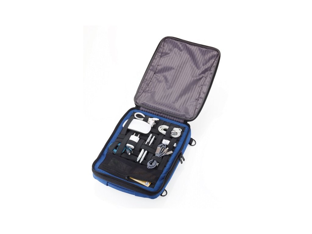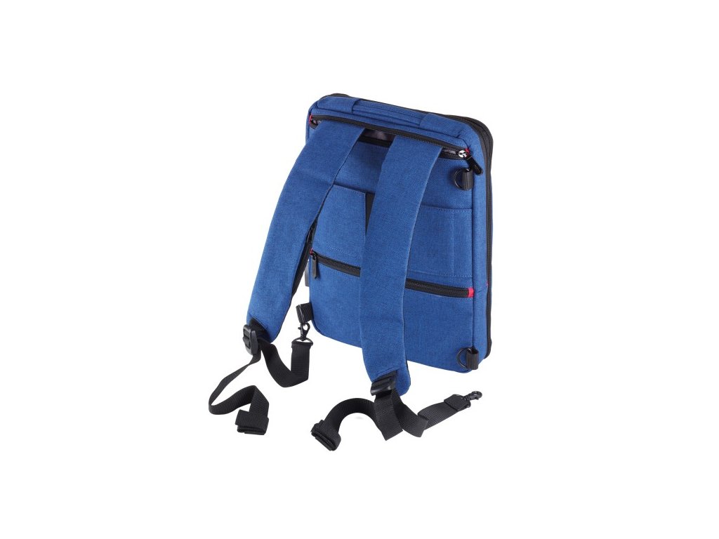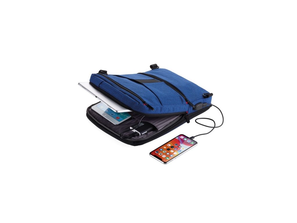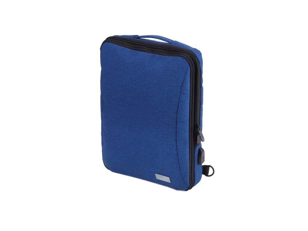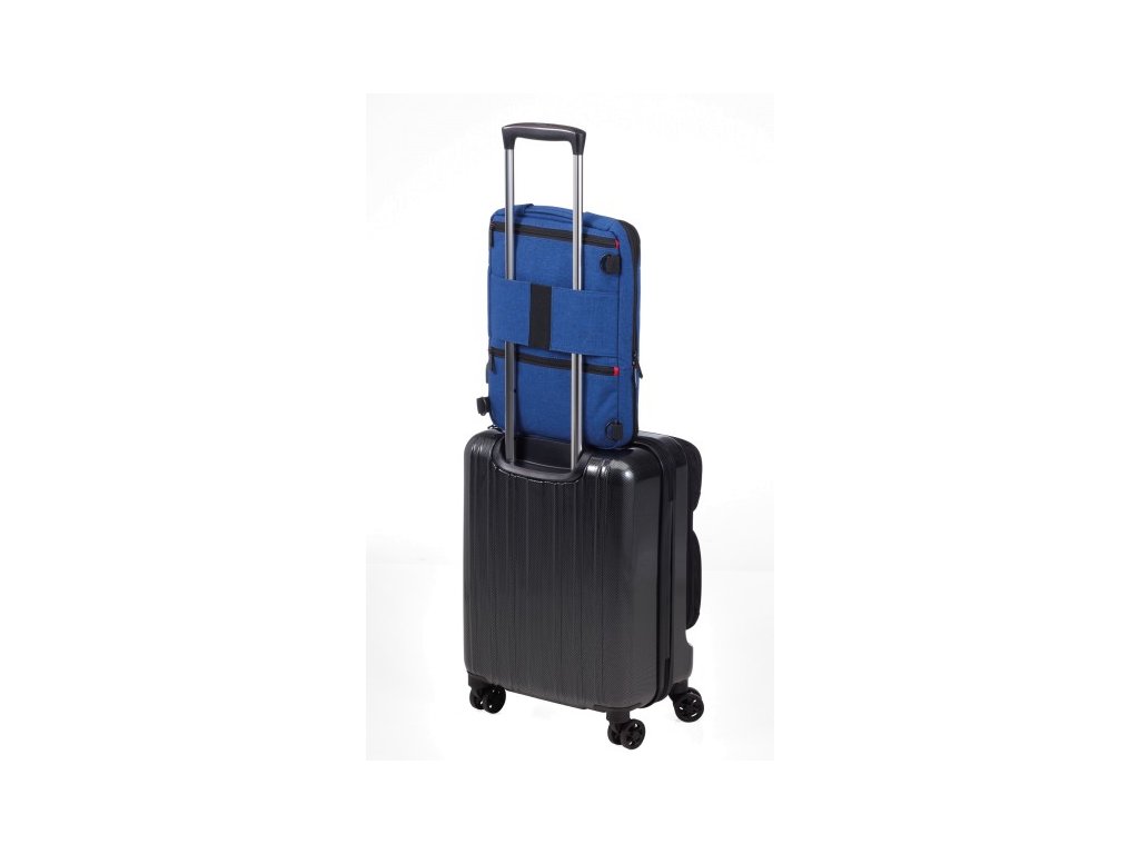 Business batoh pro nabíjení elektronických zařízení, 1 přihrádka na dokumenty, notebook, tablet (do 13''), 1 přihrádka na gumičku na příslušenství (Every Day Carry), 1 přihrádka na zádech, skladné, polstrované ramenní popruhy, elastické poutko pro uchycení na vozík, integrovaný USB kabel, vstup + výstup, 100% polyester, polyester, modrá