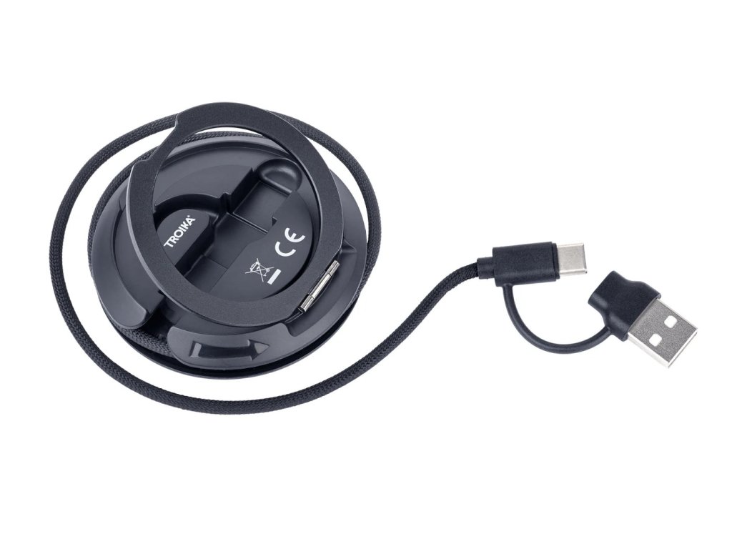 Integrovaný, zasouvací kabel USB-C/USB-A (60 cm) – vždy s vámi, perfektně uložený, nikdy nezamotaný.