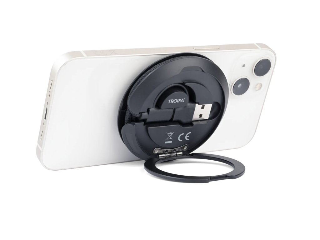 Udržitelný a chytrý – Kabel je vyroben z recyklovaného polyesteru s výklopným kovovým kroužkem pro postavení a dalším kroužkem MagSafe pro všechny smartphony a Apple Watch®.