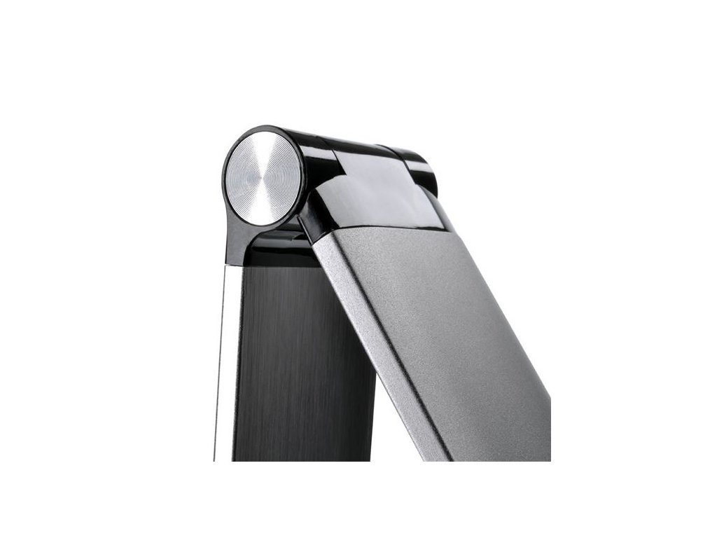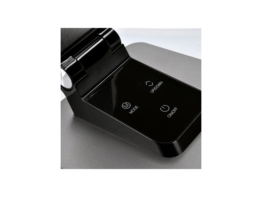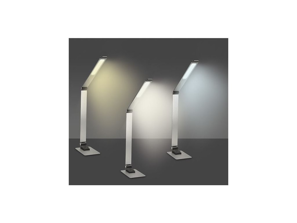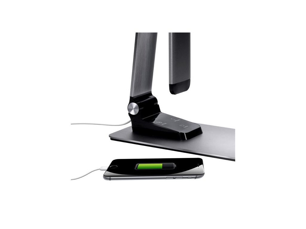 Lampička s příkonem 11 W poskytuje světelný tok až 550 lm a široký úhel svícení 120°. Nabízí také USB výstup (5V, 1000mA) pro nabíjení mobilních zařízení – kabel je součástí balení. Robustní konstrukce z hliníku se stěnou o síle 6 mm dodává lampičce stabilitu a dlouhou životnost. Rozměry: 393 x 120 x 450 mm, napájení AC 100–240V, výstup DC 12V, délka kabelu 140 cm. Barva: stříbrná. Energetická třída G.