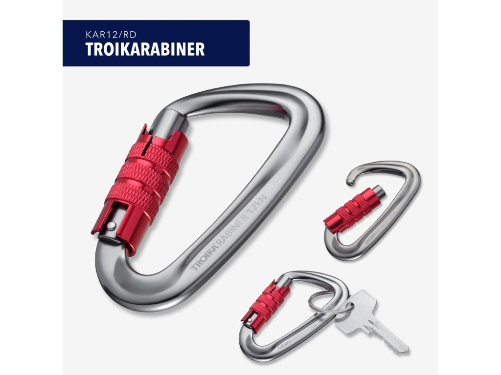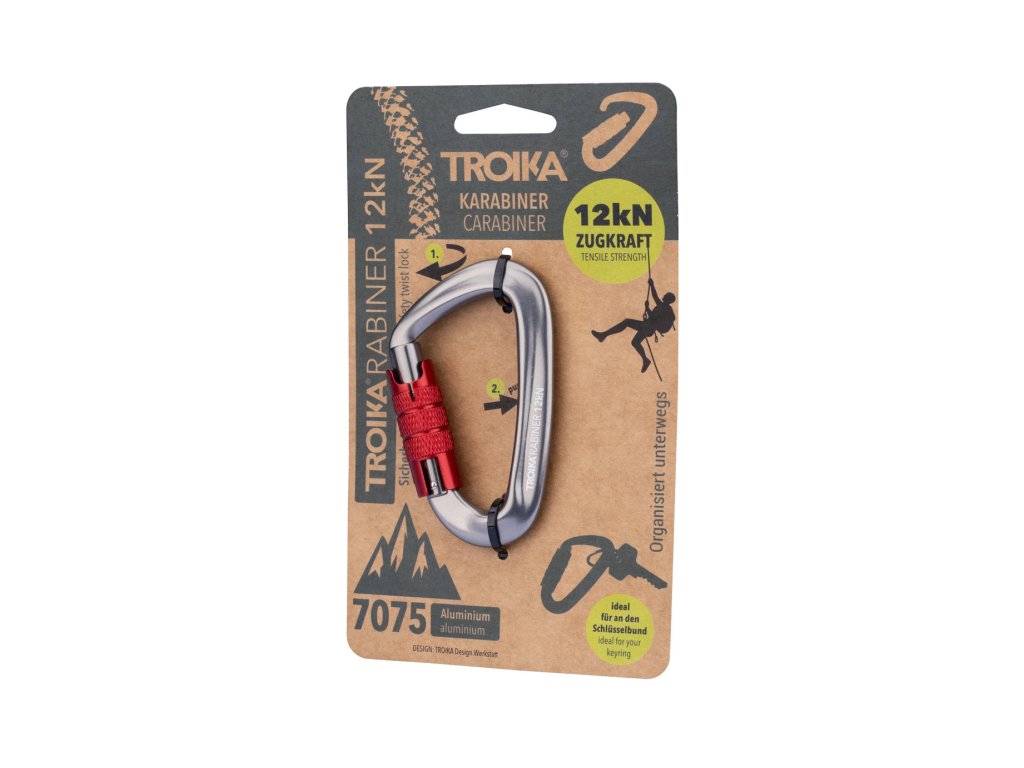 Maximální bezpečnost: Robustní karabina s bezpečnostním otočným zámkem – spolehlivá a bezpečná v každé situaci. TROIKARABINER je extrémně odolná: pevnost v tahu 12 kN – dostatečně pevná pro nejnáročnější použití. Prémiový materiál: Vyrobeno z vysoce kvalitního hliníku 7075, lehký, pevný a odolný proti korozi. Stylový a funkční: Eloxovaný, matně černý – elegantní design se setkává s odolným výkonem.