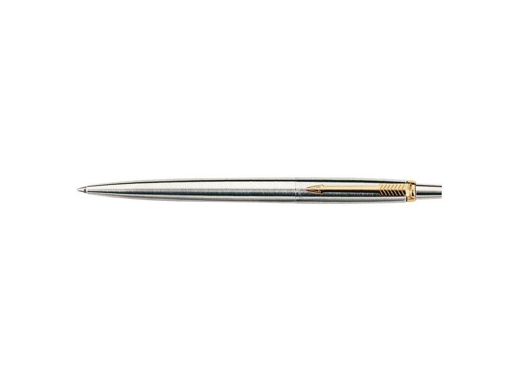Modelová řada Parker Jotter nabízí velmi příznivý poměr ceny a výkonu při zachování všech charakteristických předností: vysoká kvalita, spolehlivost, pohodlné držení a nadčasový elegantní design. Ušlechtilá nerezová ocel pozlacenými doplňky. Kuličková tužka je opatřena stiskacím mechanismem. Dodáváno v dárkové krabičce.