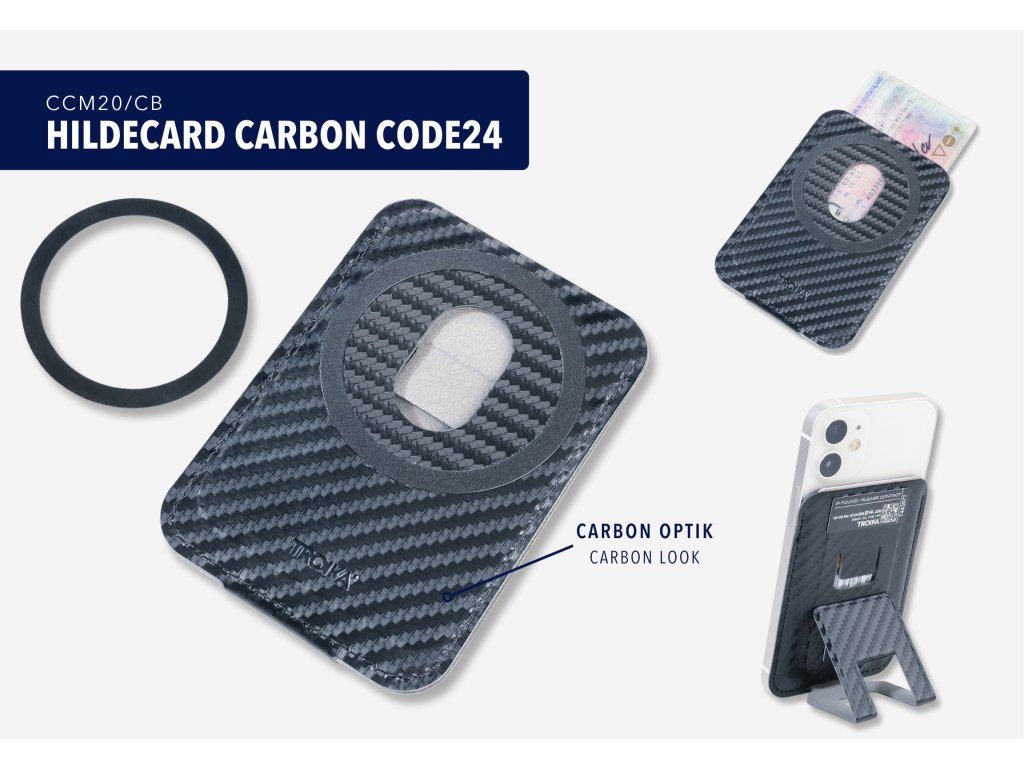 Pouzdro na karty k připevnění na smartphone "Hildecard carbon"