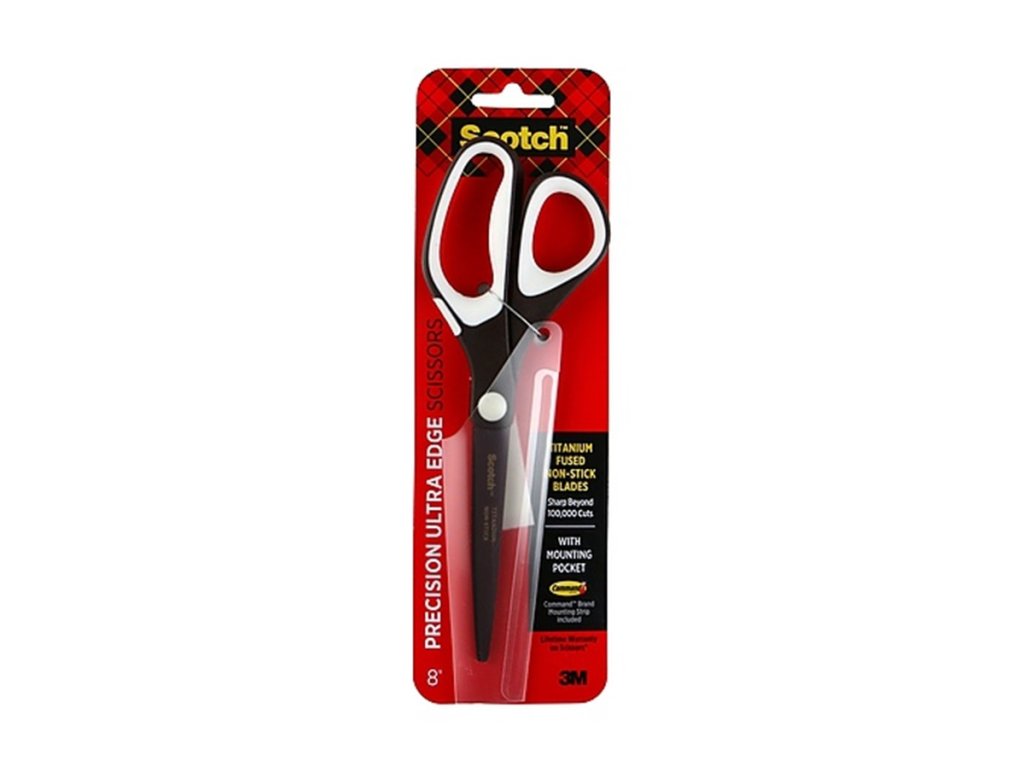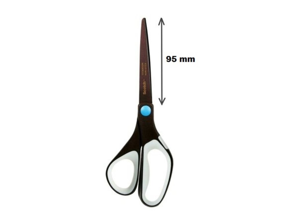 3M Scotch Presision Ultra EdgeTitanium Non-Stick nůžky vydrží díky čepelím z titanové slitiny (4x tvrdší než nerezová ocel) až 100 000 střihů bez nabroušení. Nepřilnavý povlak na čepeli odpuzuje lepidlo a díky tomu vyžaduje minimální údržbu. V případě potřeby očistěte čepele vlhkým hadříkem.