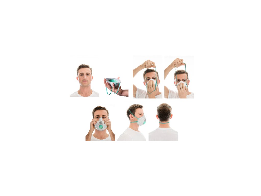 - Natáhněte delší dolní smyčku a přiložte respirátor na obličej.