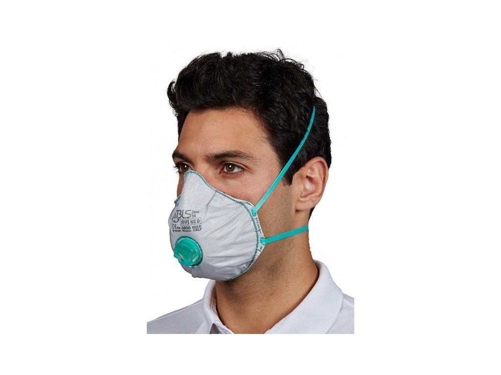 Ilustrační foto - respirátor FFP3 R D BLS Zero 31 má zelený ventilek a odpovídající označení.