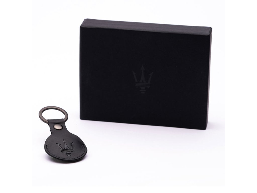 Tvar je navržen pro pohodlné nošení, zatímco ocelový kroužek umožňuje snadné připevnění k taškám, batohům, zavazadlům nebo tradičním klíčenkám. Reliéfní logo Maserati dodává exkluzivní nádech a ztělesňuje nadčasovou eleganci a sportovní charakter značky.