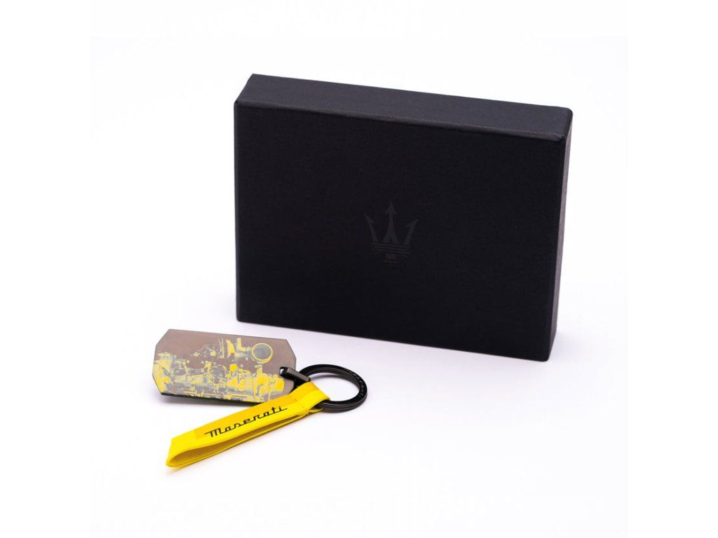 1 přívěsek na klíče s visačkou a motivem motoru Maserati
