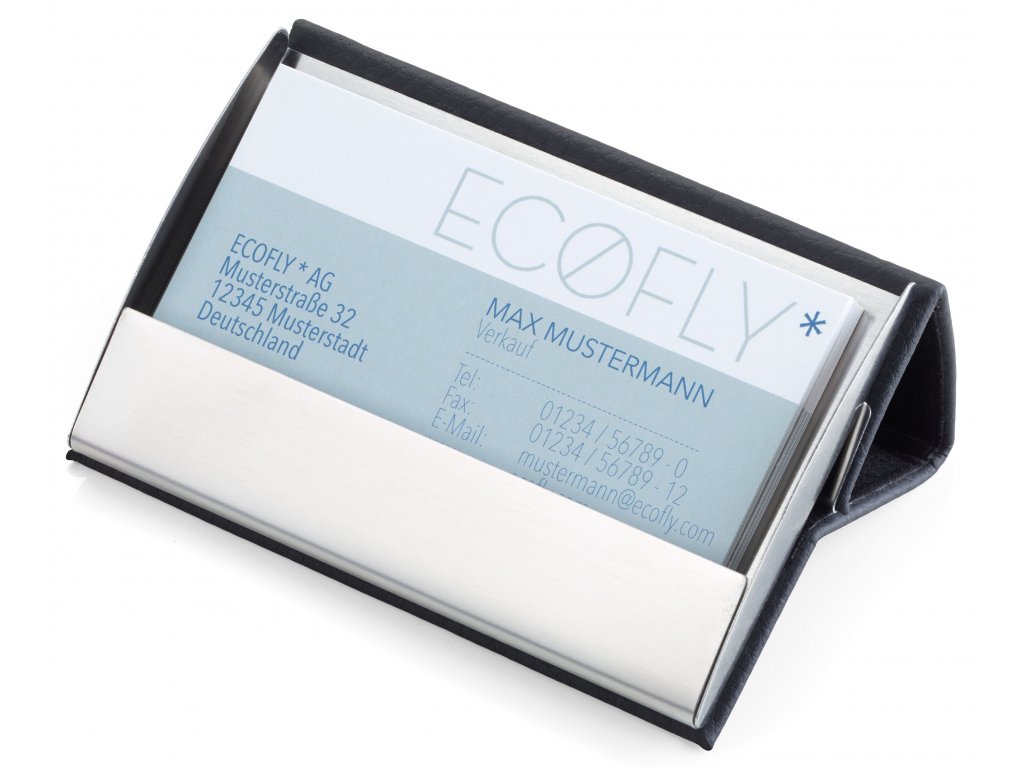 Pouzdro na vizitky, magnetické zavírání, funkce stojánku, umělá kůže/nerezová ocel, černá